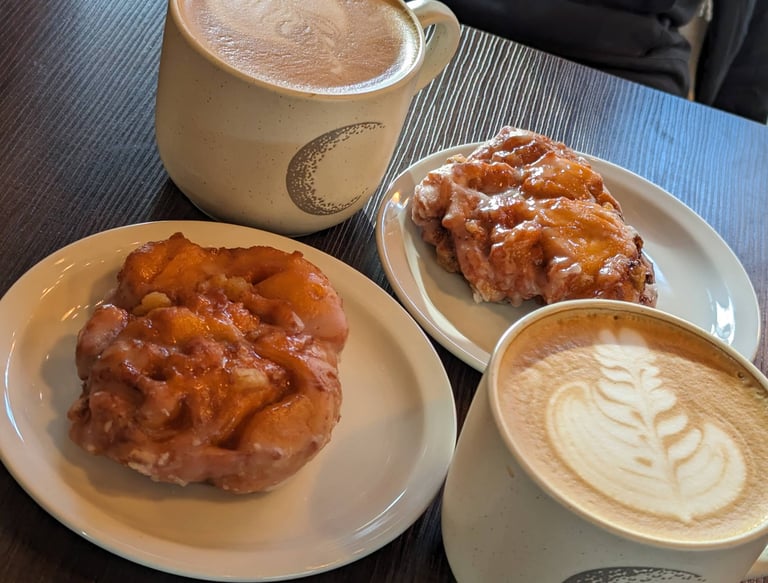 Cozy up with our almond latte and fresh pastries in a warm, laptop-friendly space.